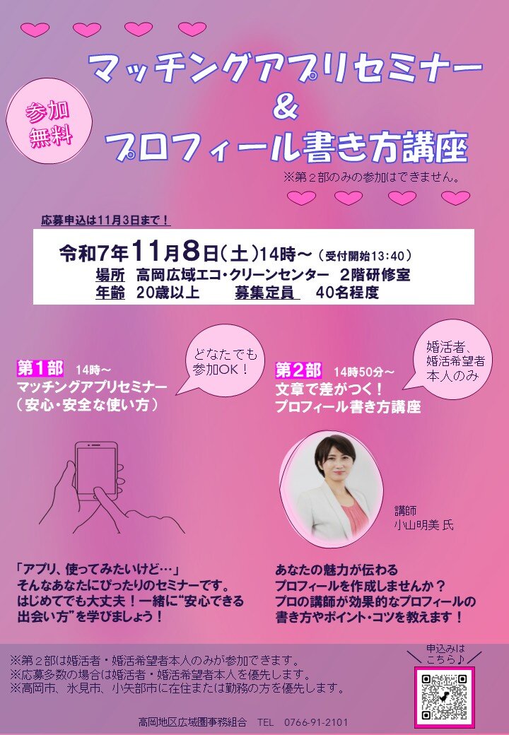 11/8 『マッチングアプリセミナー&プロフィール書き方講座』の開催について